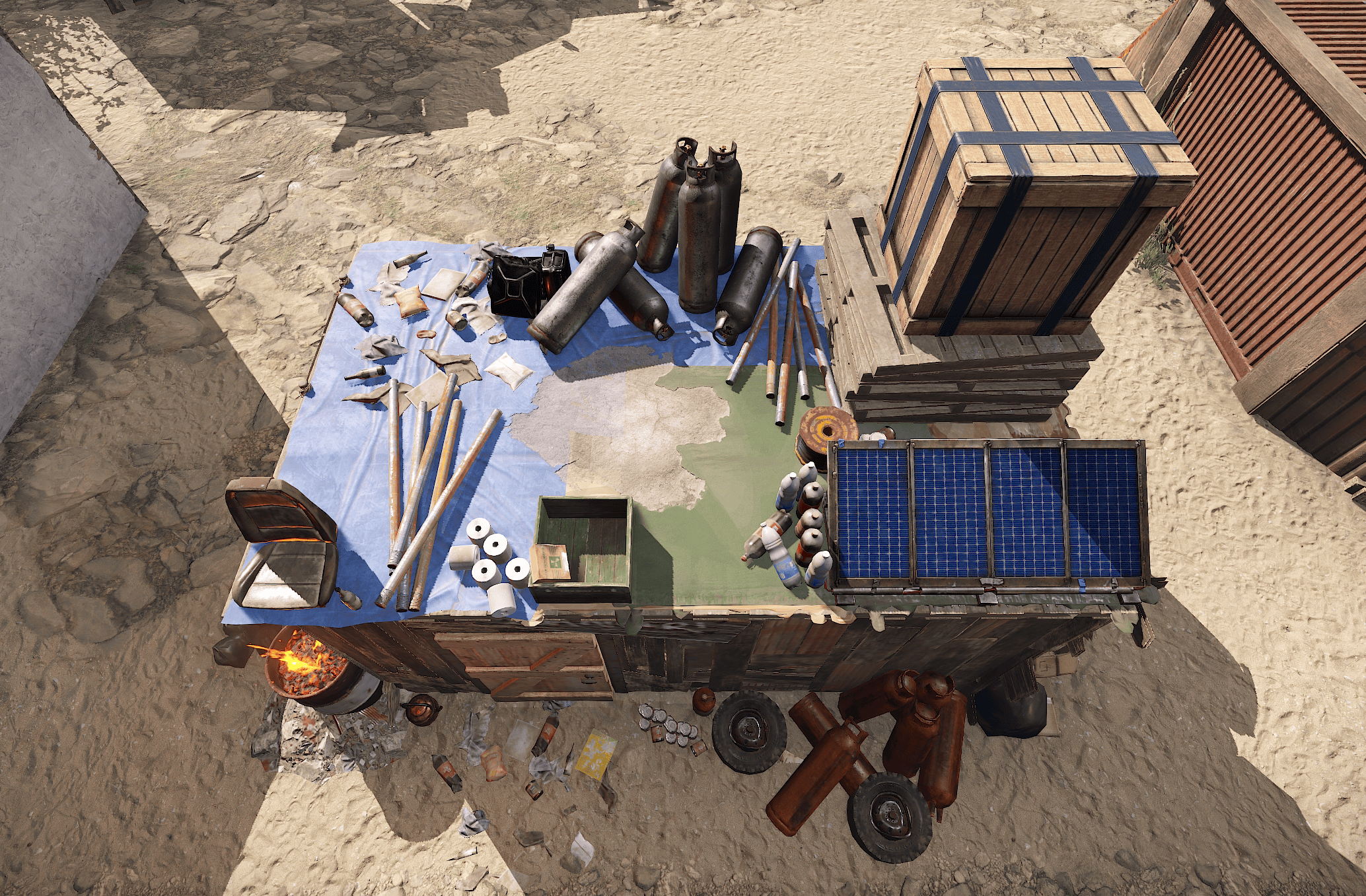 This is a Homeless shack with a high level of detail. This homeless shack is livable and can easy have a lock placed on it with working electricity. This Prefab is Prefect for a lot of things. It also has 2 seats on the roof and a custom made ladder. This Prefab has 97 entities