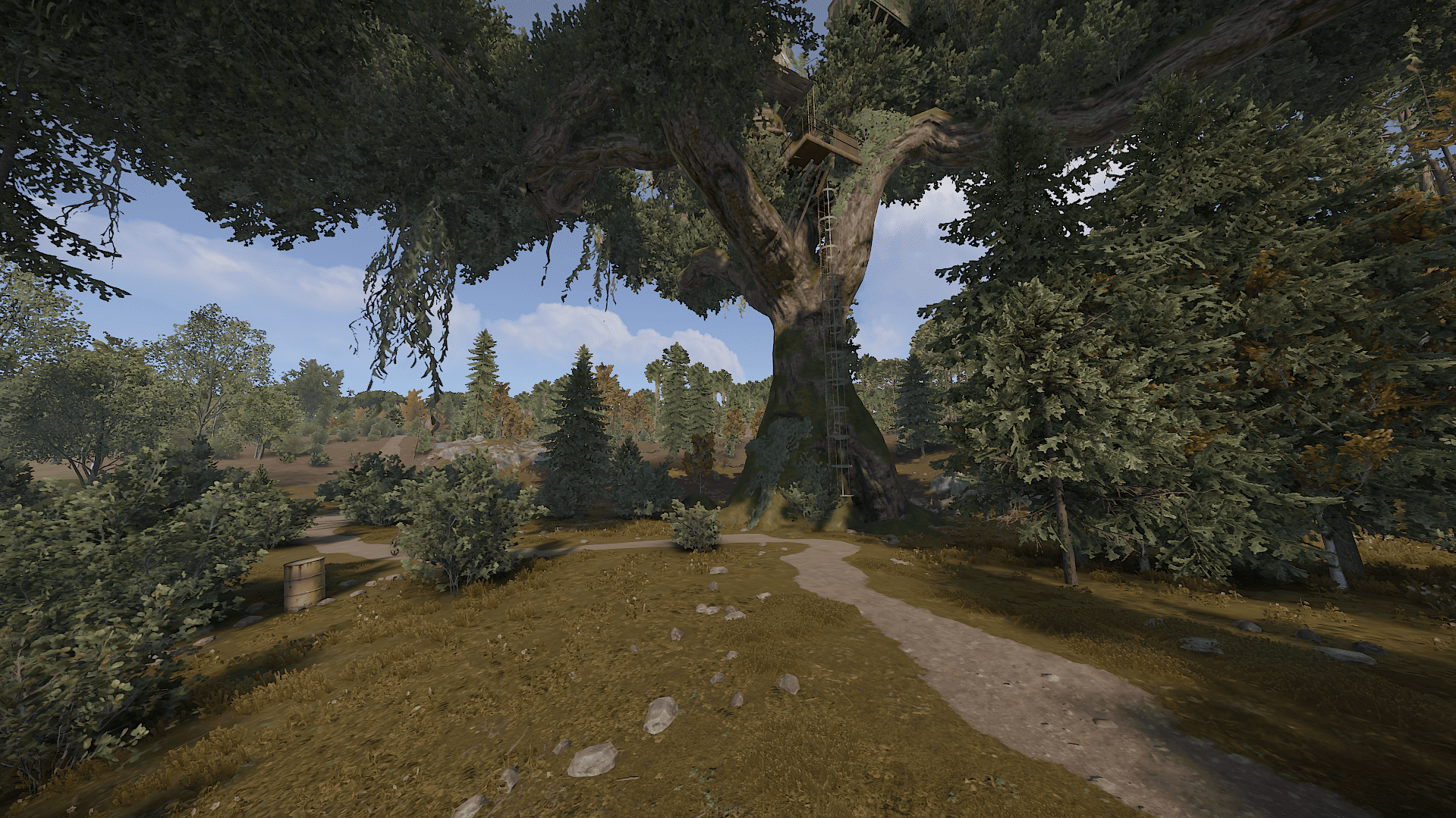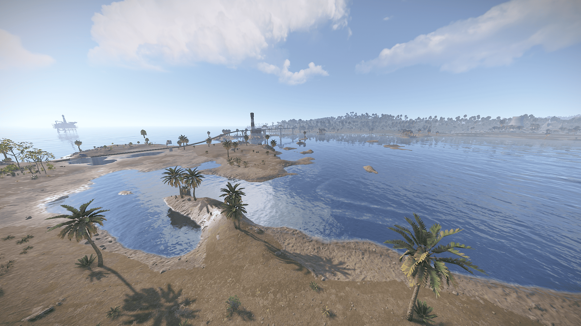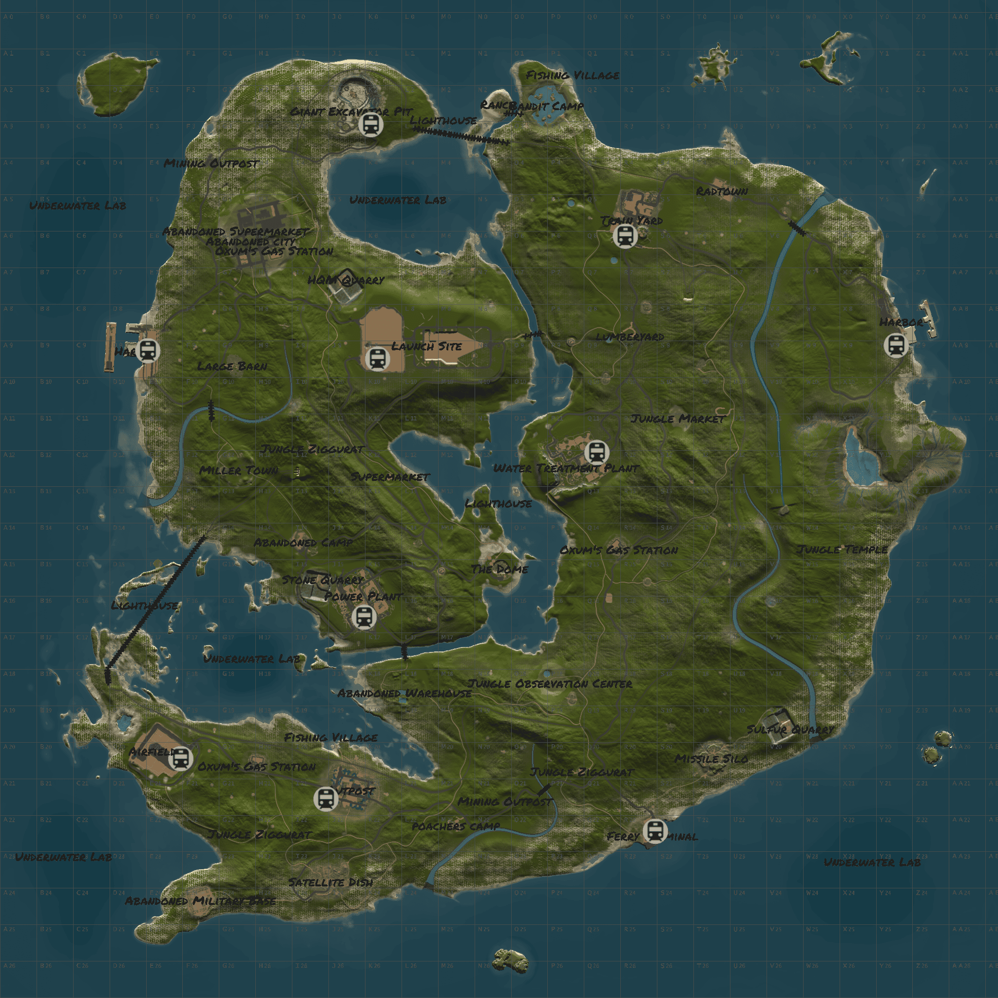 Boscage is a 4000 in size of landmass separated by a body of water through the middle and scarred with long tropical rivers sometimes visited by alligators , the dynamic of the map is that the left smaller island is occupied by bigger tier 3 monuments making it more fit for close combat and action while the right sided bigger island is nearly twice as big with dense jungle and forest having monuments and roadside monuments to explore and loot at every corner.