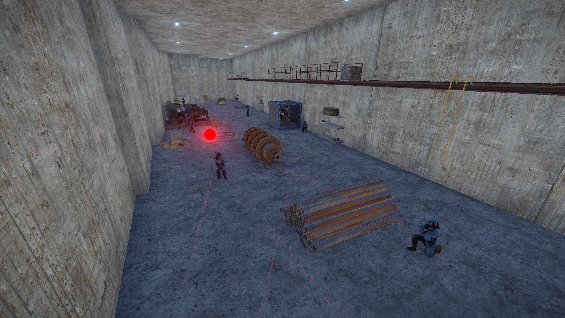 Made by 3 floors, all 3 floors have bots and loot. There are also a few bots on the top of the dam.