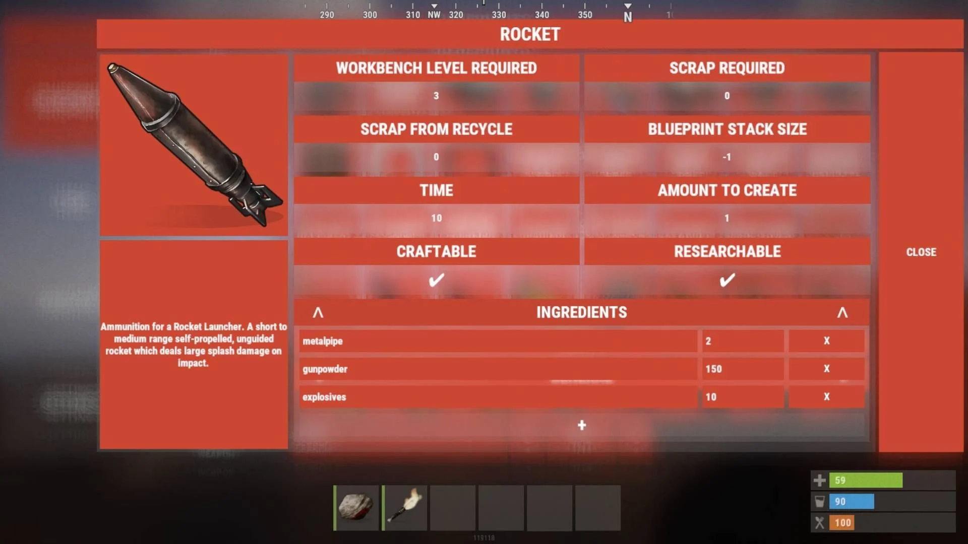Full customization of blueprints, including crafting ingredients, crafting time, required workbench level, and more.