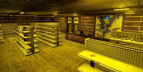 Loot inside the building and green card spawner on the desk.