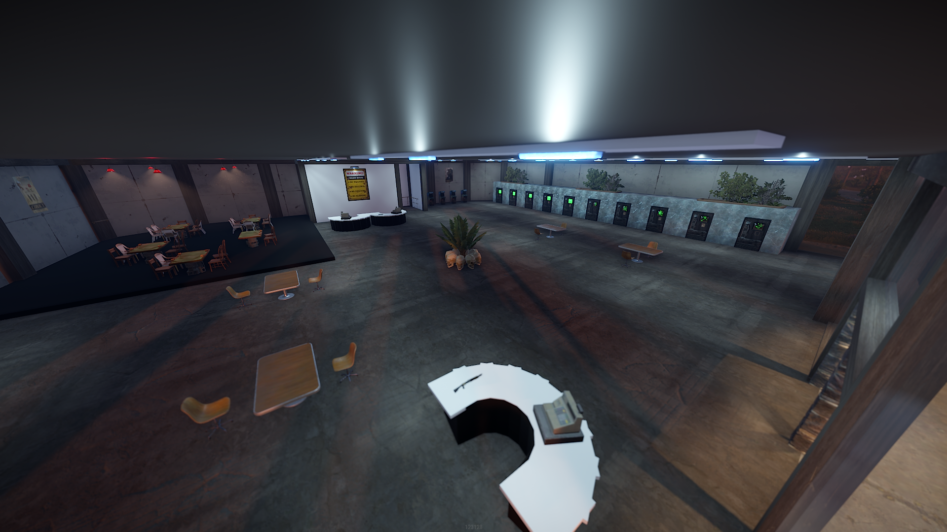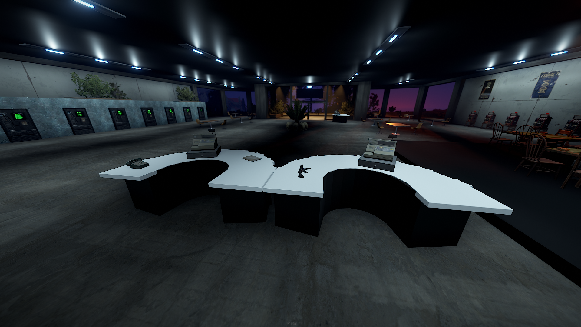 Has lobby floor with 10 NPC vending machines, poker tables, blackjack, slot machines, arcade machines, tables/chairs, phone and radio.