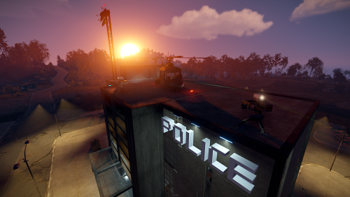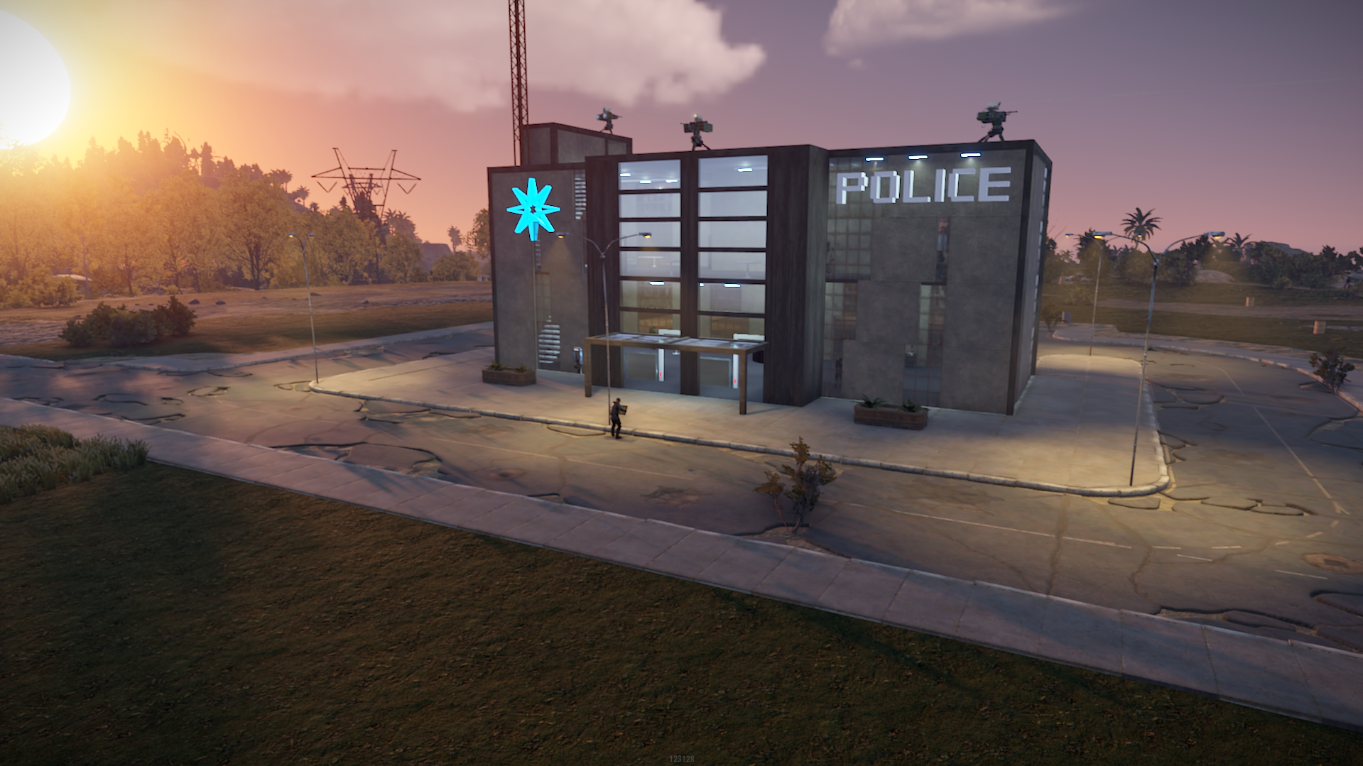 Police Station safezoned has 3 floors and is equipped with vending machines , jail cells and also guarded by Peacekeepers and turrets.