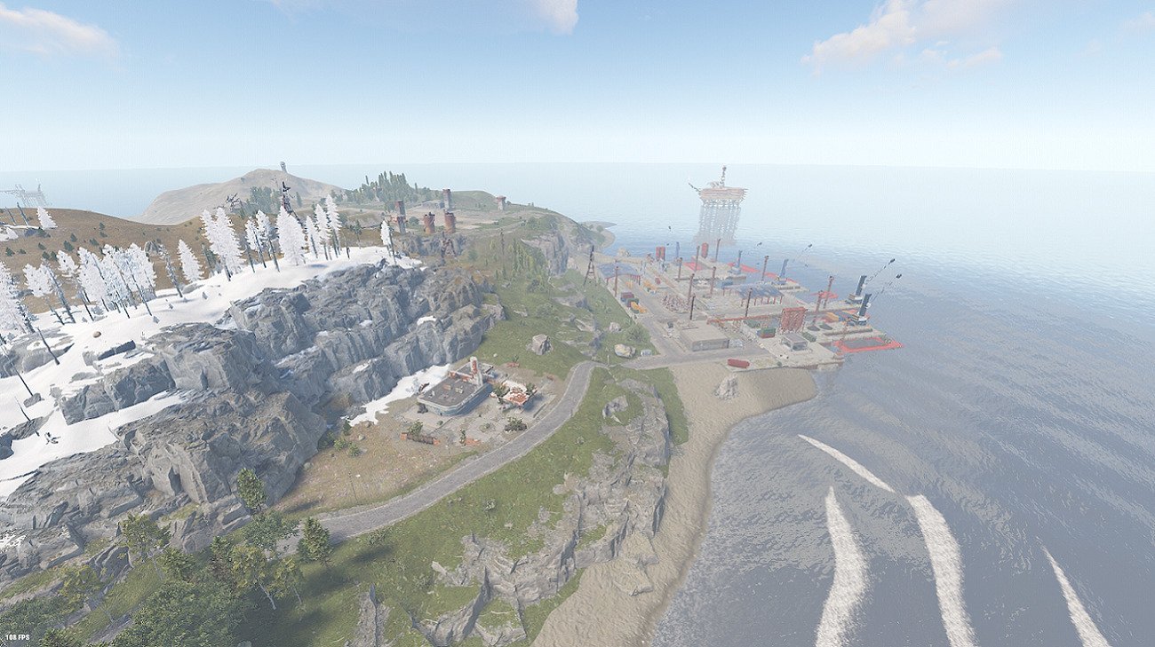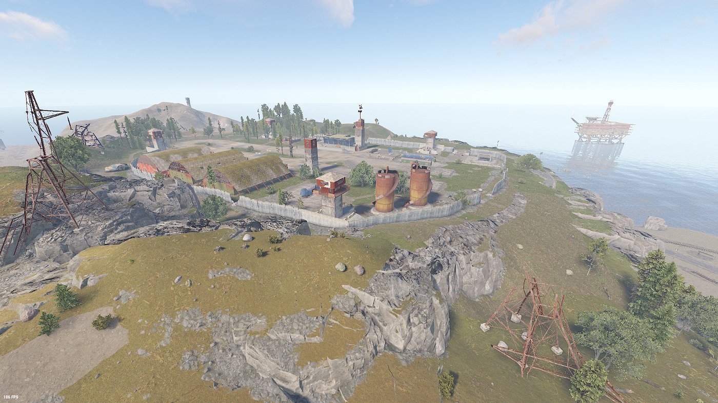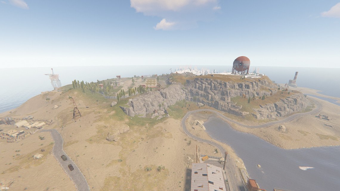 Airfield, Sphere Tank , Military Base, Fishing Village, Oil Rigs, Harbor,