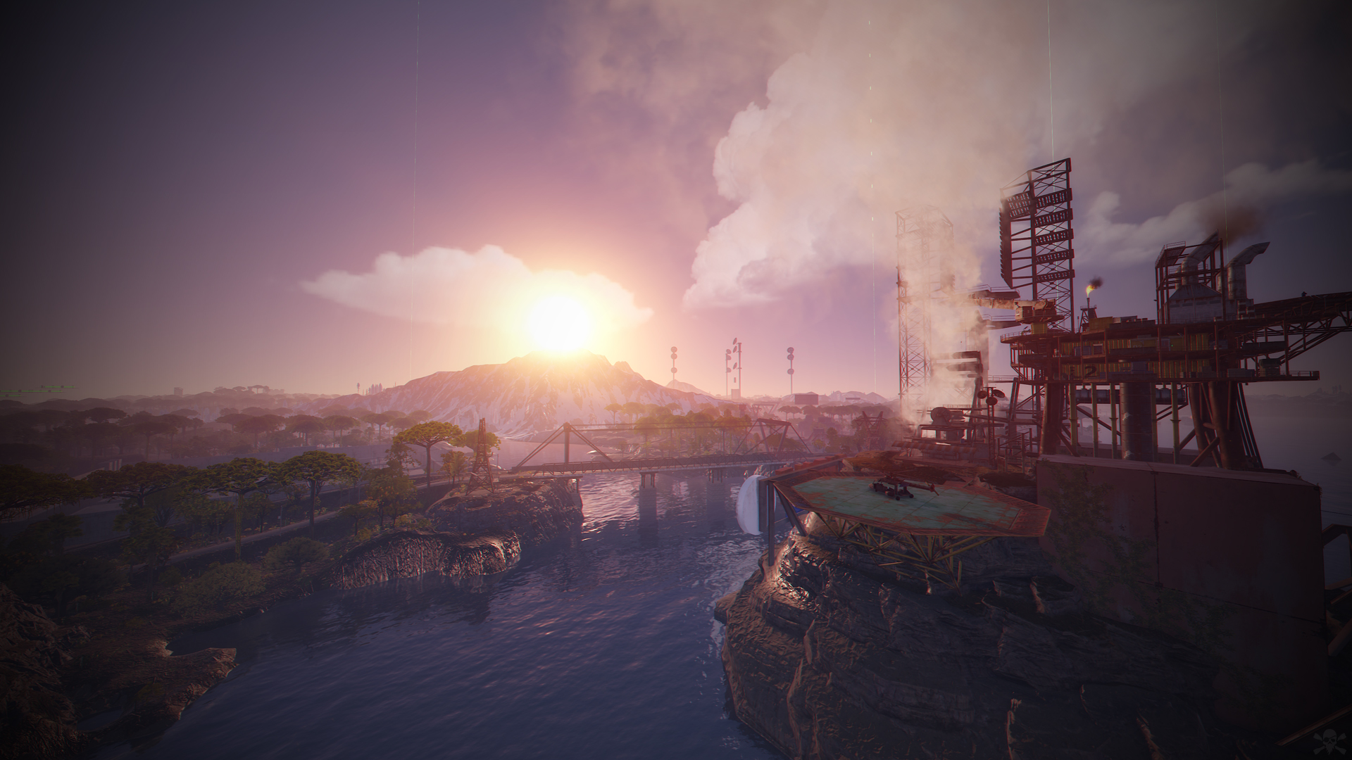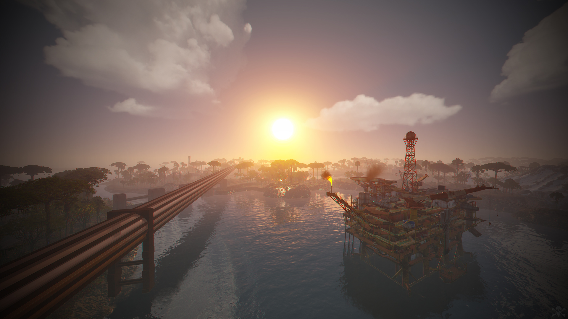 • Ziggurat temple • Jungle ruins • Radtown • Ferry Terminal • Nuclear missile silo • Large oil platform • Small oil platform • Submarine laboratories • Harbor • Large fishing villages • Fishing villages • Launch site • Satellite dish • The Dome • HQM Quarry • Stone quarry • Sulfur quarry • Arctic Research Base • Sewer Branch • Train yard • Junkyard • Abandoned military bases • Military tunnel • Caves • Large barns • Ranch • Bandit camp • Power plant • Swamp • Airfield • Giant excavation • Outpost • Lighthouse