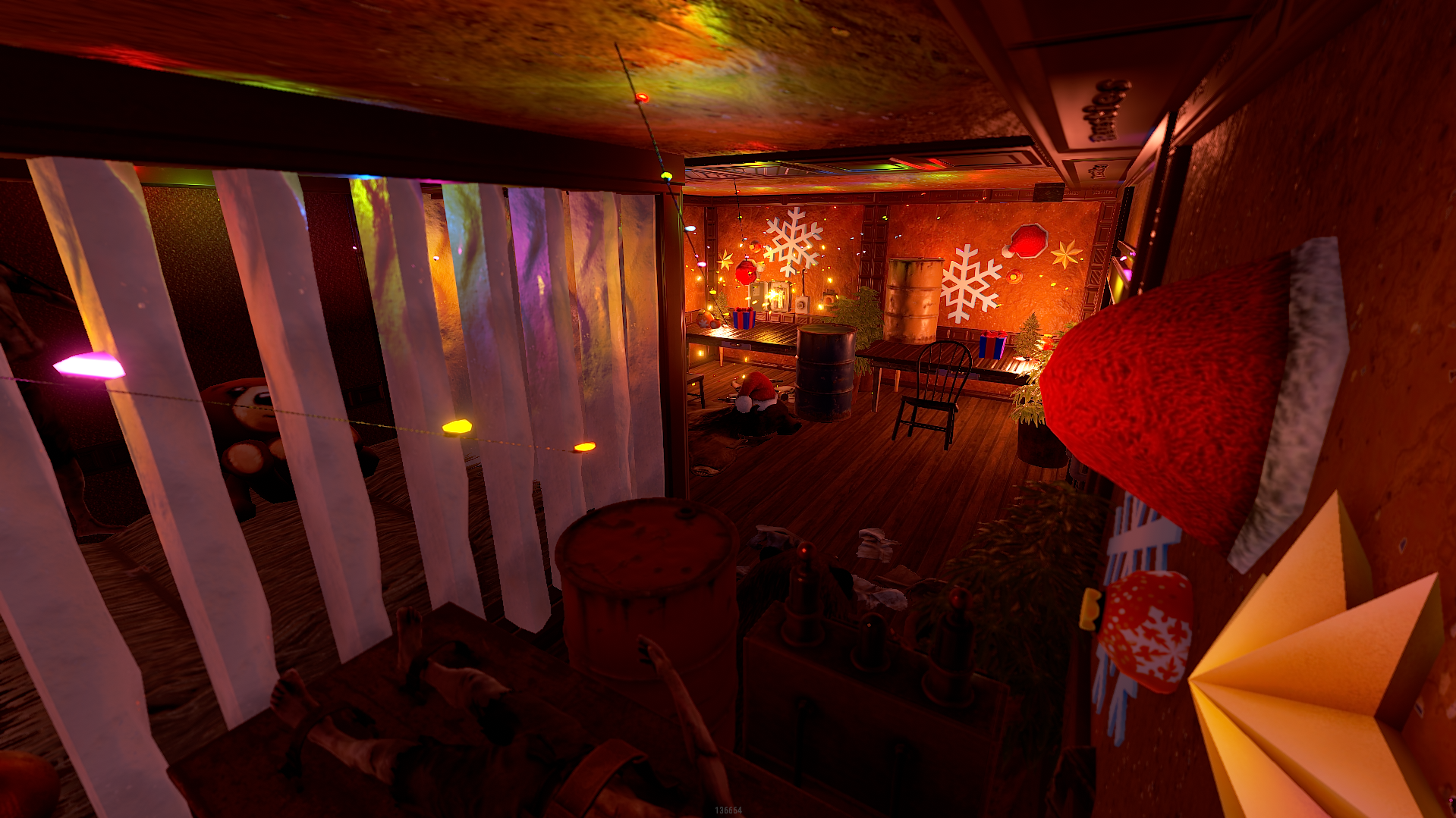 Sneak into Santa's Villa find all 4 buttons and solve the puzzle to clean Santa of all his weapons and valuable loot inside the Villa!
