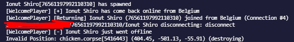 "Global Message": "<size=14><color=#00ffff>[+]</color> <color=#FFFFFF>{player}</color> <color=#00ffff>has come back online</color> from <color=#00ffff>{country}</color></size>",