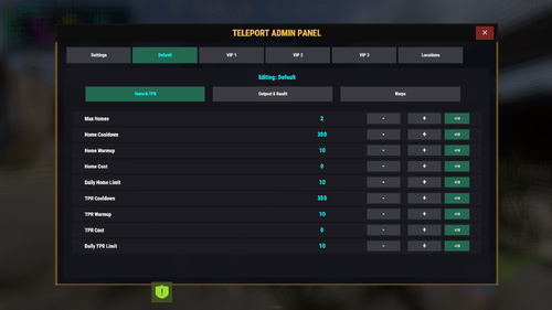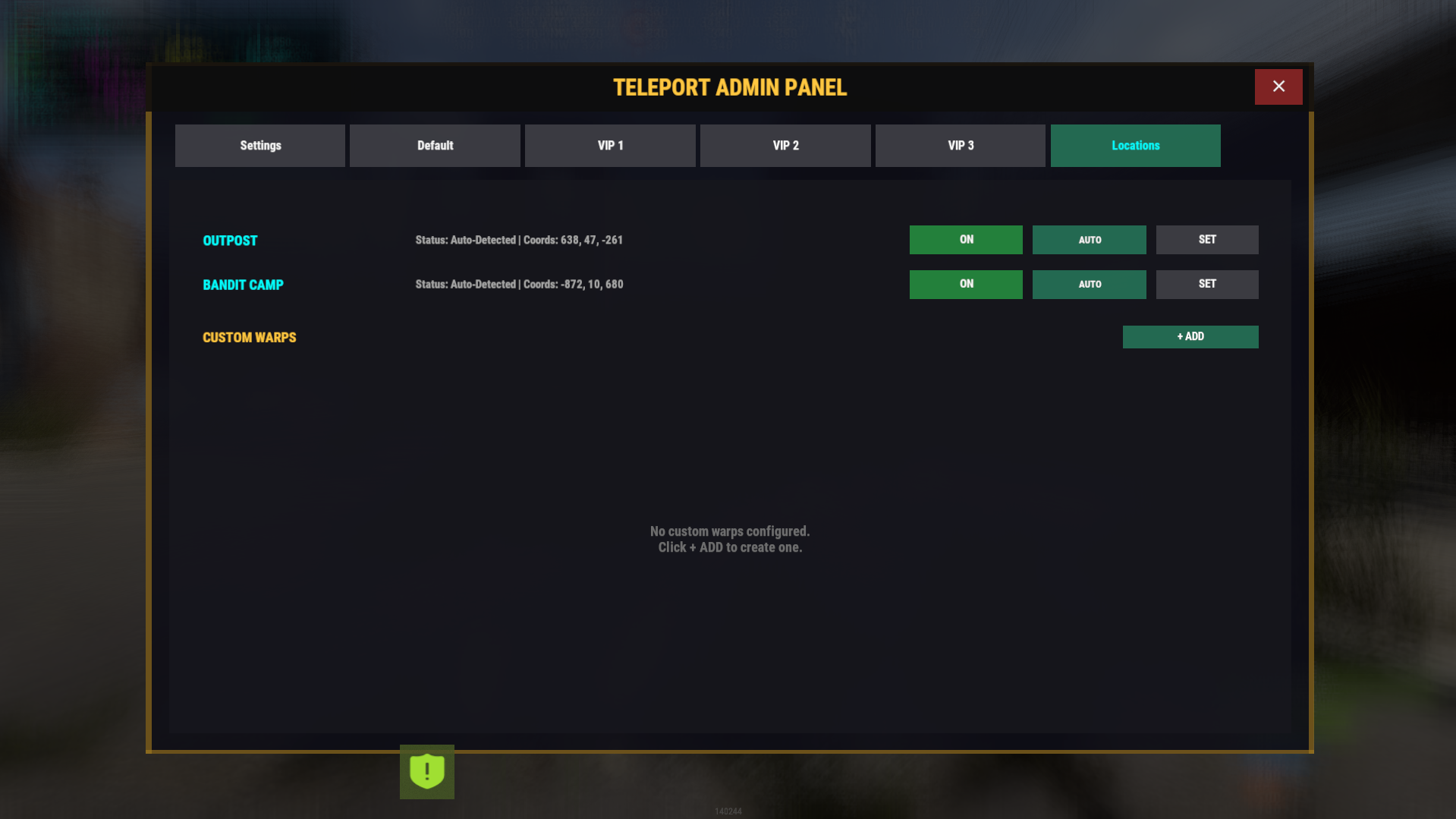 Homes, TPR, warps, outpost/bandit teleports — all wrapped in a clean UI with VIP tiers and admin tools.
