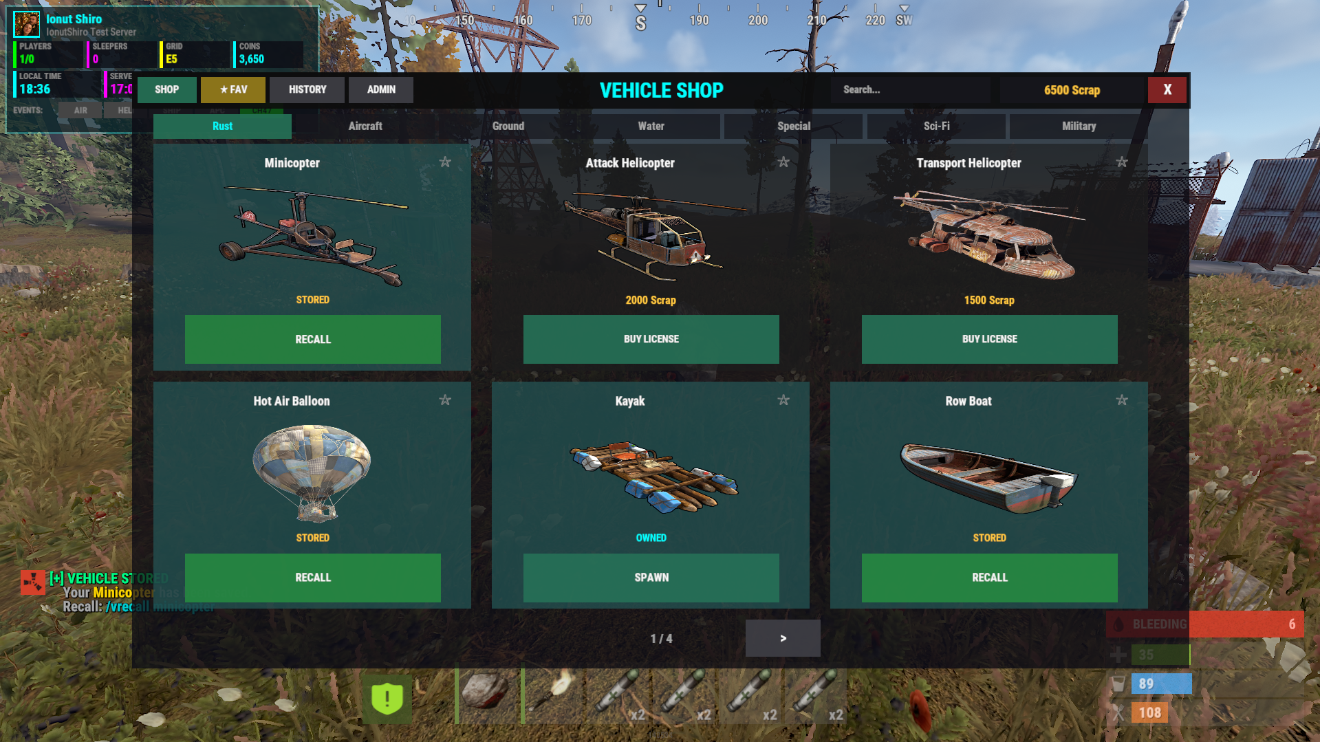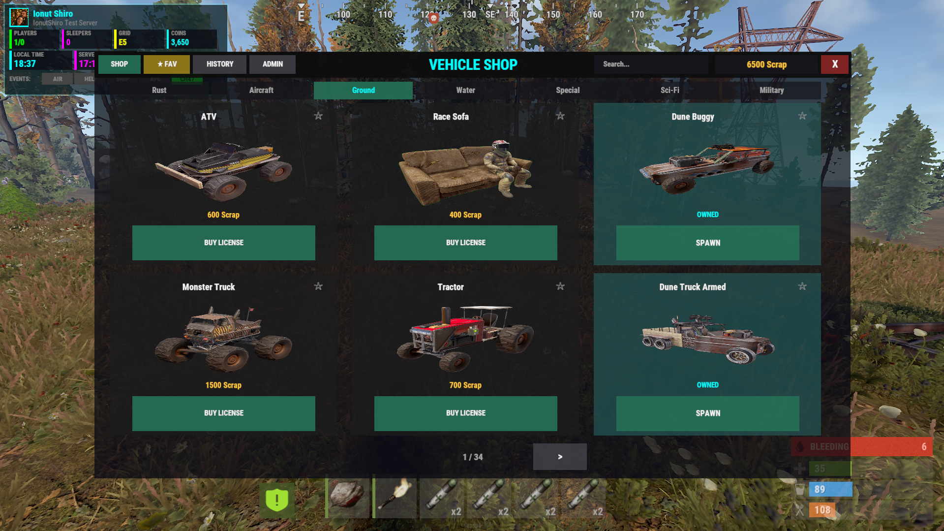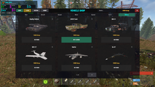 VehicleShop is a full-featured, GUI-based vehicle store for Rust servers, built around a license-based ownership system instead of disposable spawns.