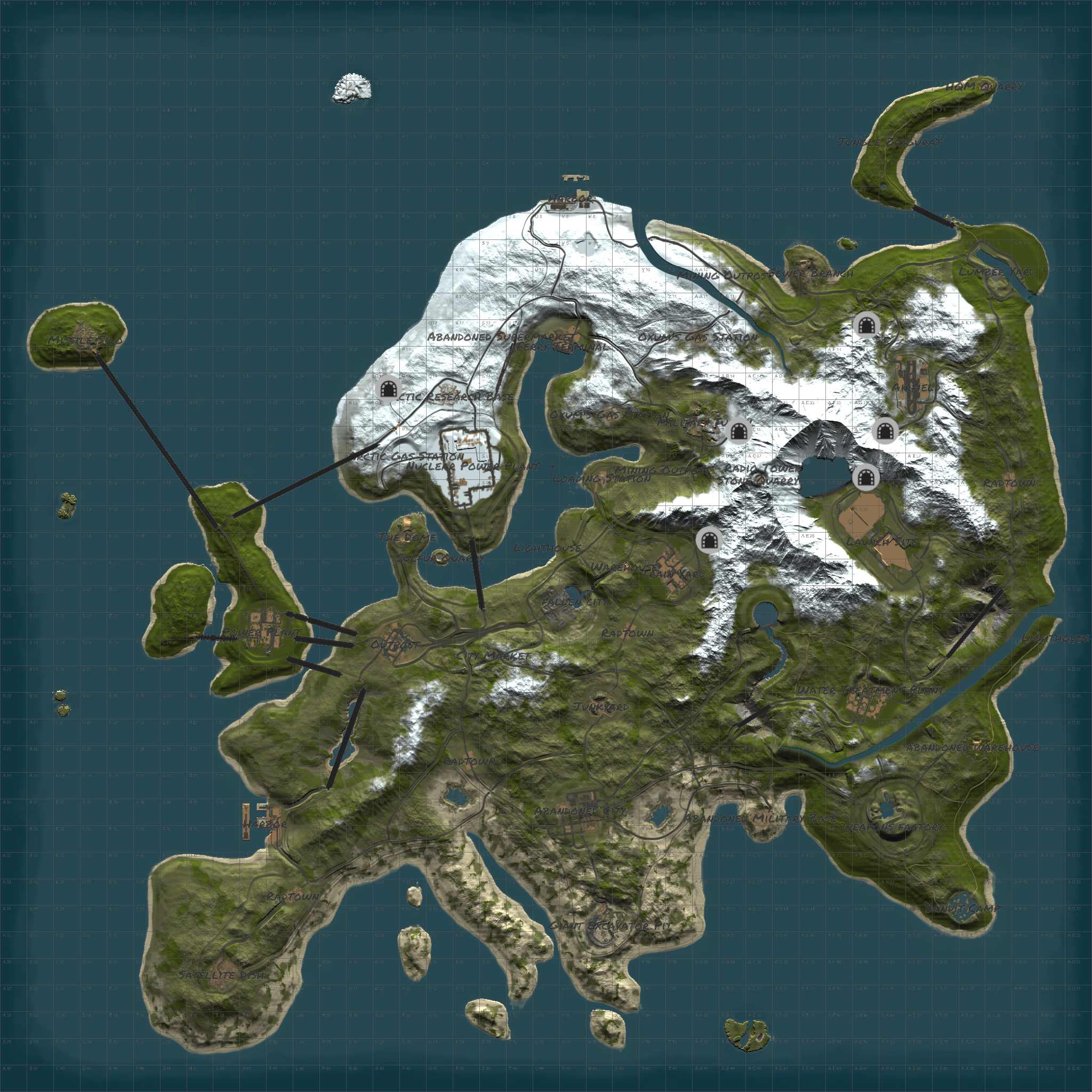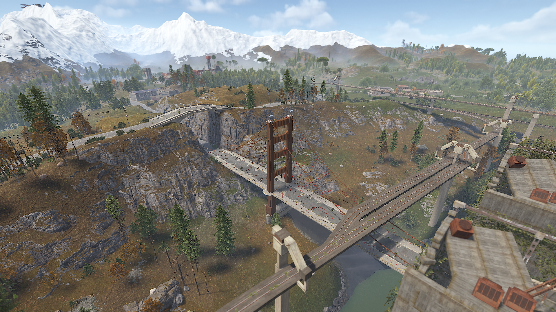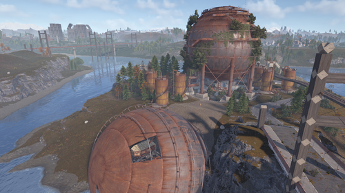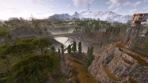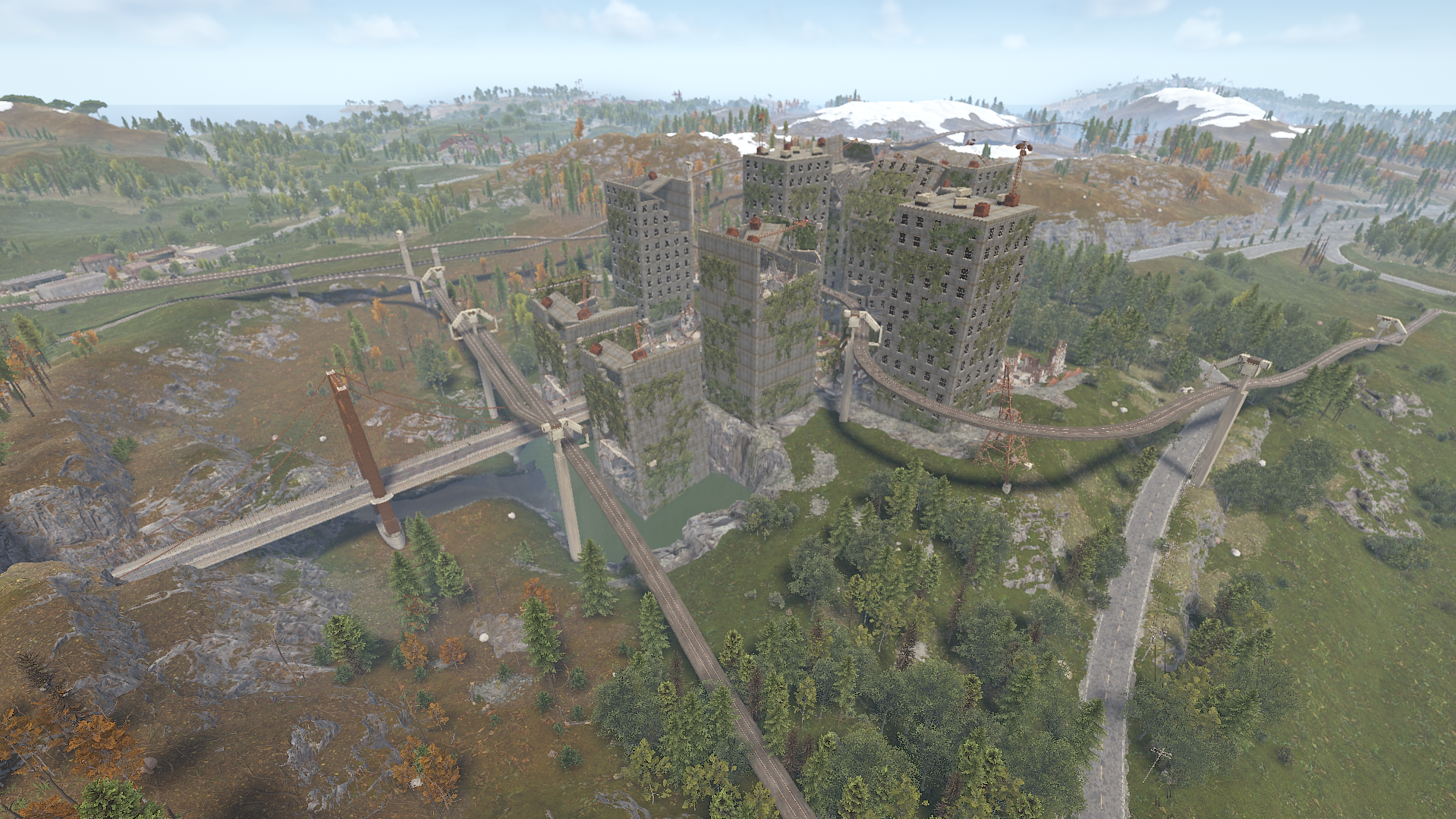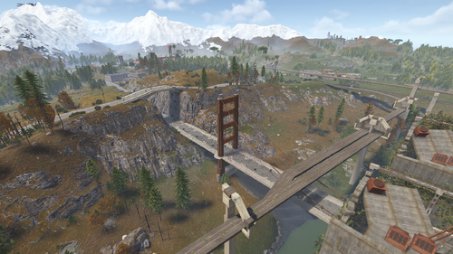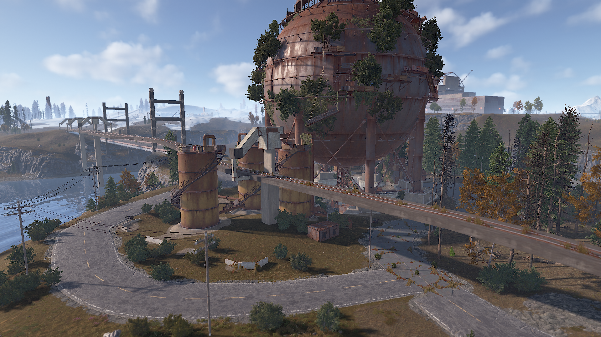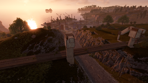 Procedural & Custom monuments are scattered all around the map with build islands off shore and small prefabs here and there to encourage exploration and make players more engaging.