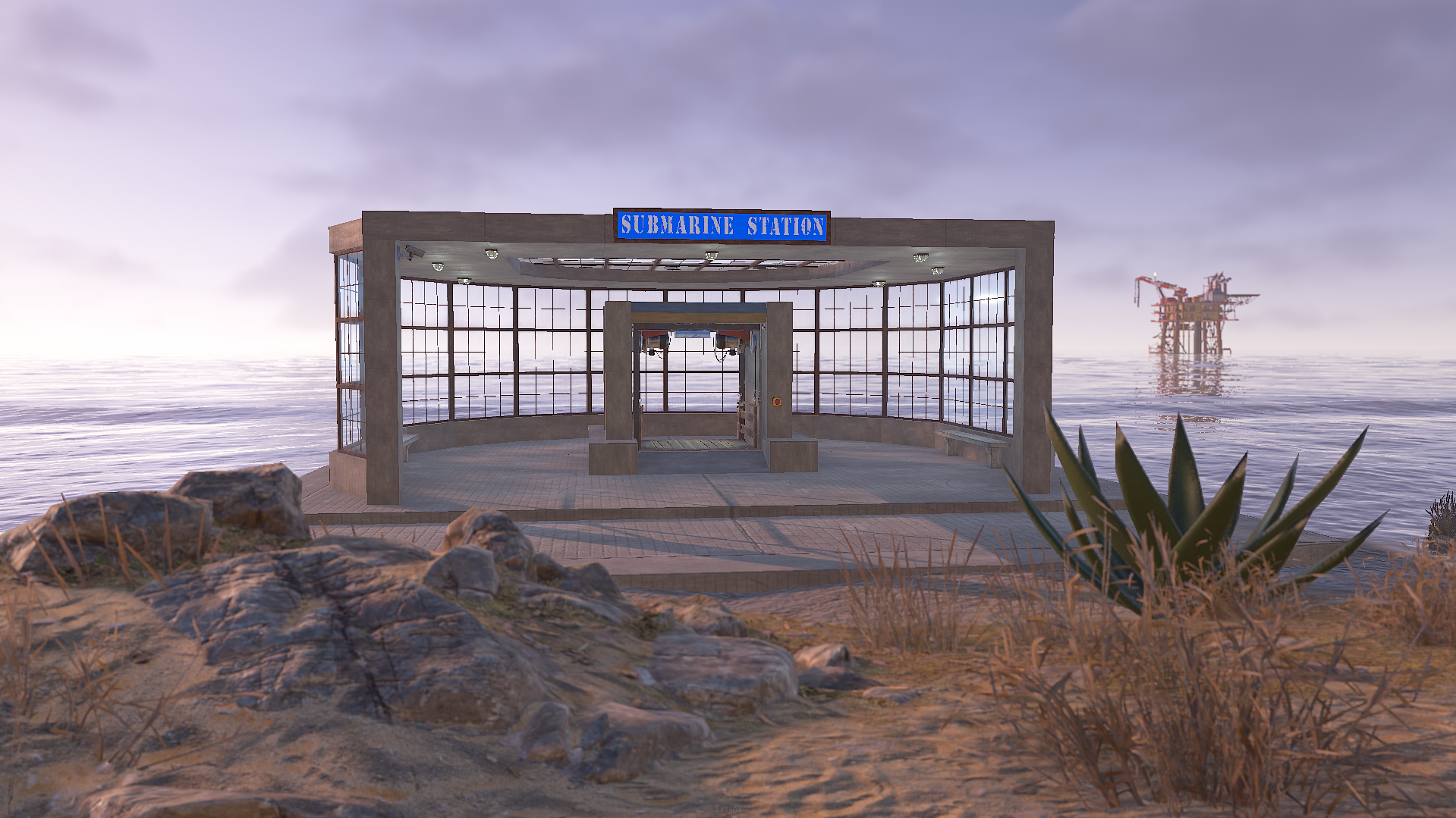 A small beachside monument with an elevator leading to a maritime base where you can dock your submarine and loot , access from elevator can be done with a green keycard which is also lootable on one of the desks before the puzzle door.