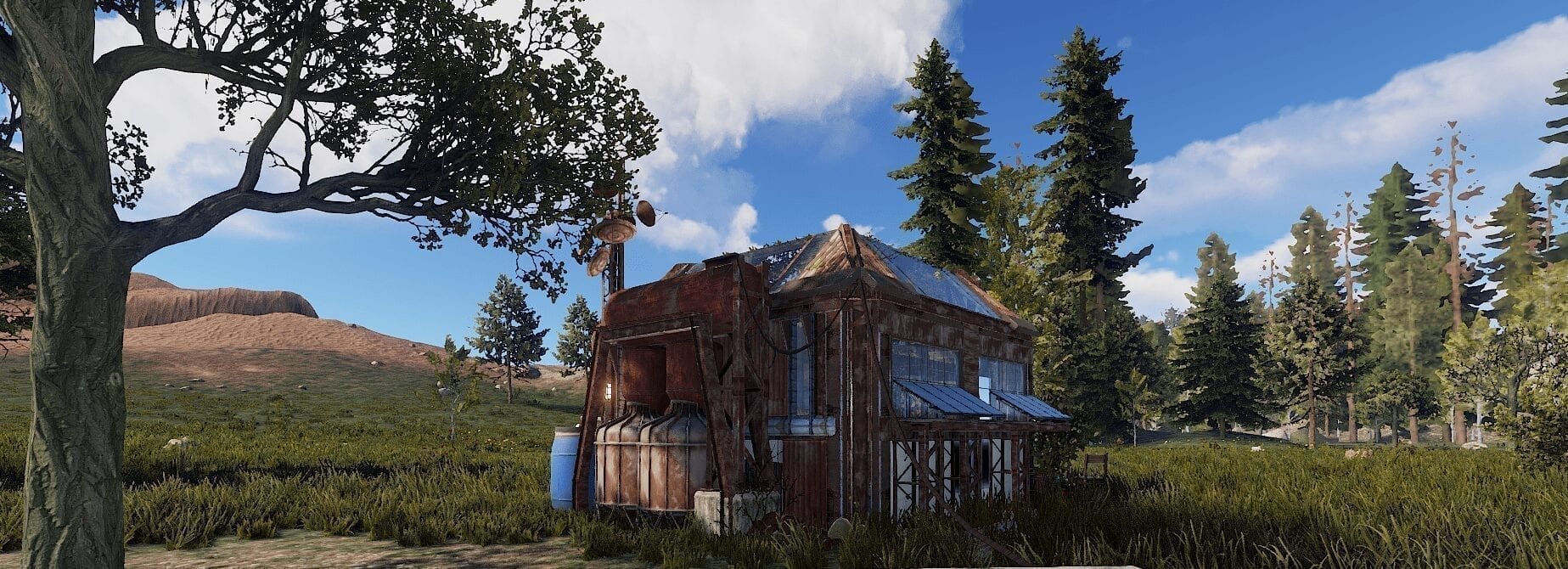 Tiny monument, features a idle scientist outside and two green crates with a blue keycard puzzle.