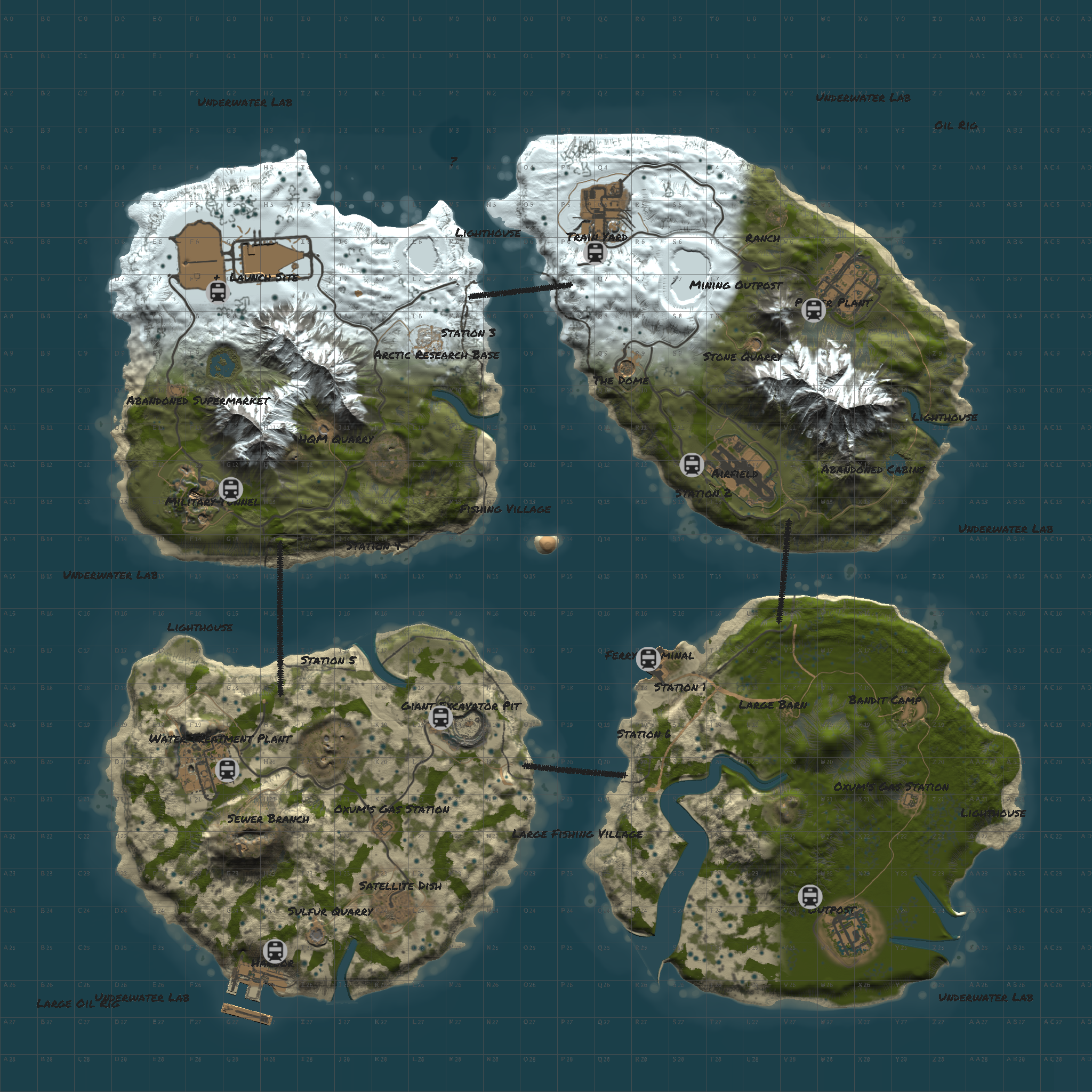 Bermuda's Rectangle 4K is a rust custom map with 4 different islands where each island has a different biome and landscape than the others.