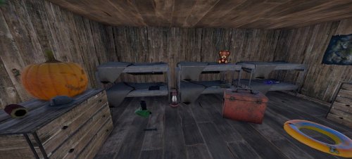 Entity count 485. Camp Blood is designed after "Friday the 13th". There is a touch of fog in the air and you can just feel Jason lurking around the corner. Best to place by a large lake on your map. No NPC's placed because they will just run off with adding them in rust edit. I use zombies on my server from Umod. Its free and called "Better Scarecrows". (still need to place them in rust edit) The players love the zombie vibe with the fog and all the cabins to look around in search of loot. There are 2 latrines, 1 mess hall, girls cabin, boys cabin, counselors cabin, shower Room and lots of trails through the forest to each. There is an area for a campfire already lit and a large hay bale to practice shooting areas. This is a perfect prefab for the spooky holiday coming up that players will love! Theres loot all around and inside the cabins.
