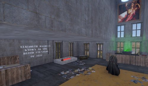 When walking up on this monument you just know something bad has happened here and there's a long history with this mansion and most likely haunted. When you find out why this property is haunted you will be turning every corner watching your back knowing the dead girls are walking the hallways looking for revenge or perhaps Elizabeth Bathory herself. This creepy monument has a very bloody past. Elizabeth Bathory killed many girls in her mansion in the 1600's and bathed in their blood to keep her youth. She is a notorious serial killer in her time. This prefab is sure to bring some Halloween vibe to your server!. There is lots of loot upstairs and downstairs as well as NPC's. There is also loot barrels out around the property. There is a large picture upstairs where you can place a /sil if you like of her to make the prefab even spookier as i did. In the pics above you will see that i use Better NPC's on my server and i can give them kits so they are dressed according to the prefab im using them in. I recommend doing this but there is NPC's placed in there already to give players a fight when looting.