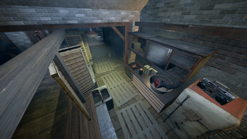 This is a full scale safezone-bar from S.T.A.L.K.E.R Shadow of Chernobyl , it features a small sized safezone with underground vending machines and gambling area.