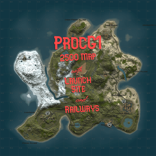 Procedural 2500 size map edited with large monuments and above ground railway network
