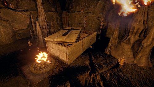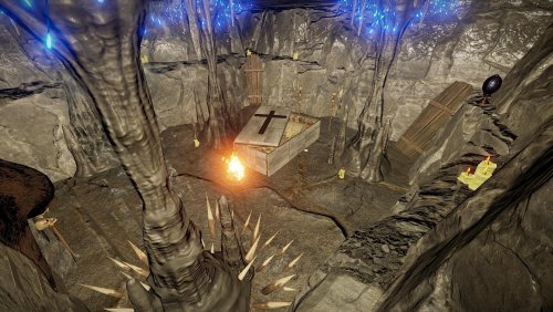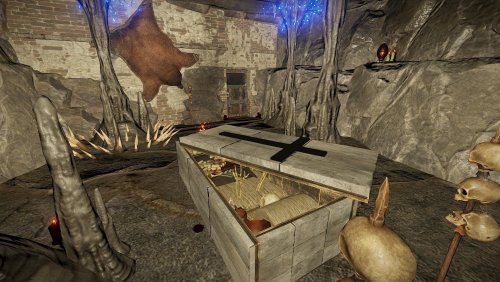 Button on the Backside of the Stone Coffin (Skull with Candle on Top)