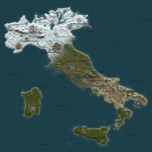 Italy map has been shaped after Italy and it features procedural monuments with a bit of touch to them and a few custom small additions around the map , size of it is 4000 but only 2000 land , rest is ocean